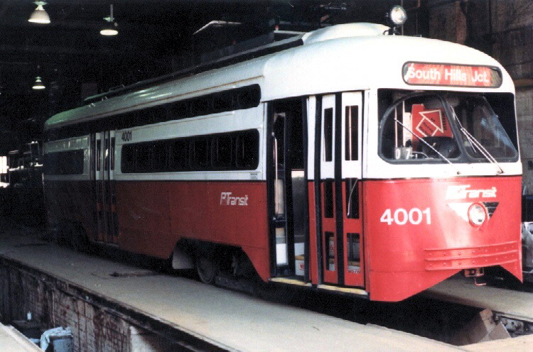 4001 emerging from the trolley tunnel at South Hills Junction.