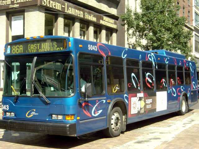 5047 heading back to West Mifflin garage, making the turn from Stanwix St onto Allies Blvd.