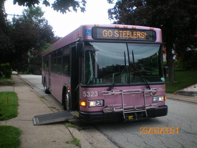5323 with the ramp deployed...love the headsign! Whoever took the shot might want to check the date...