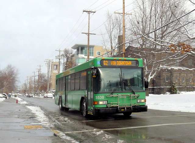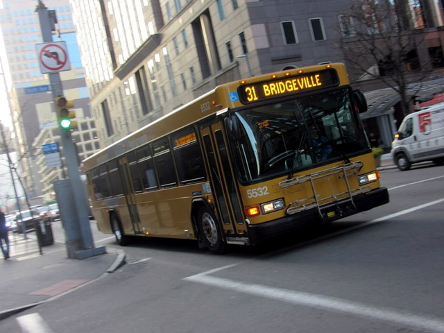 5532 turning onto Grant St from the East Busway.