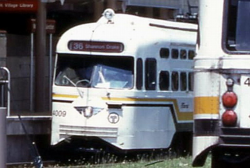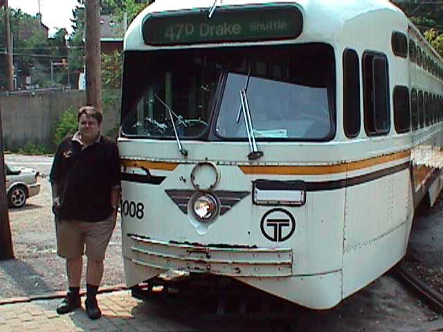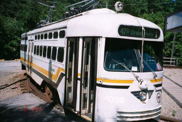 I would like to take this time and this page to "memorilize" this car on the 47D Drake line as it was since it is no more. I, as a operator, have really enjoyed the time I spent in the PCC. (even in the winter when you froze your wazoo off, or the summer when you rode with the door open to get a little air in there! No passengers on board of course!) and at least, from what I know, these cars 4004, 4007, 4008, 4009, and the un-numbered 4001 in the yard, will most likely not be cut apart, but instead sold to various places such as museums and San Francisco. We are supposed to keep one as a "monument", so to speak. 4007 is now sitting at the Bethel Park Community Center, minus its numbers.