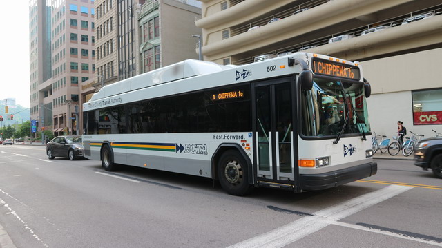 BCTA 311 VS PAT Gillig...On Liberty Ave in Pittsburgh.