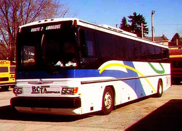 MCI coach 602 outside the garage. Nice, new and shiney!