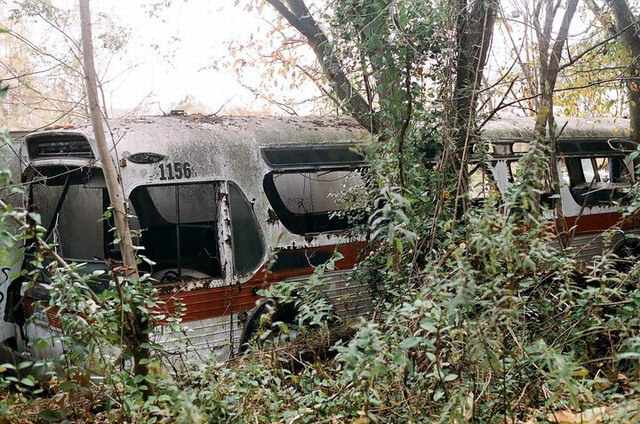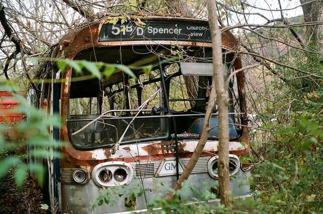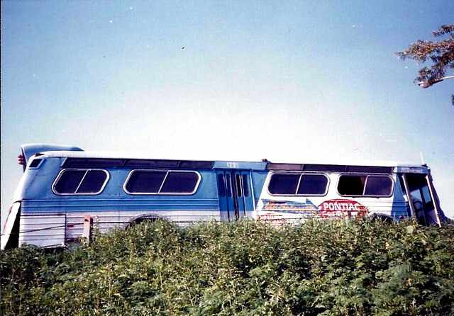 1203 sitting under the Rt 65 bridge in Manchester. I remeber snooping though this bus when it was there on my many visits there when I was younger.