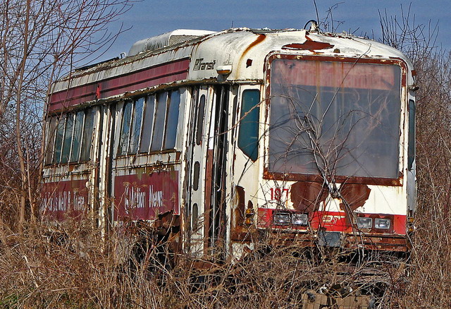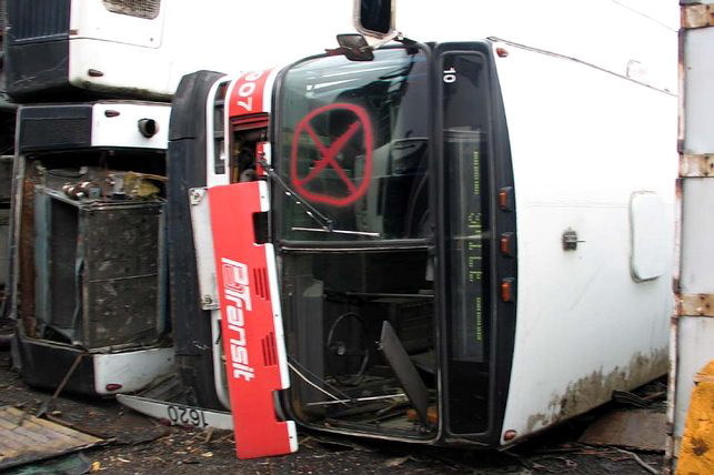 Another Ross bus, 2272 preparing to be DRIVEN to where it will meet its end. If you look at the back, something big already took a bite out of it.