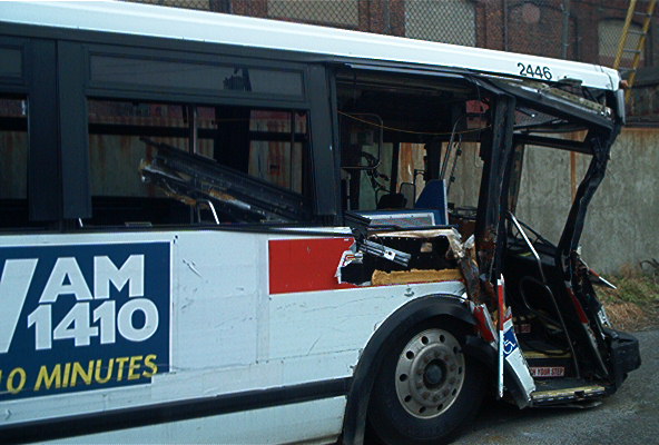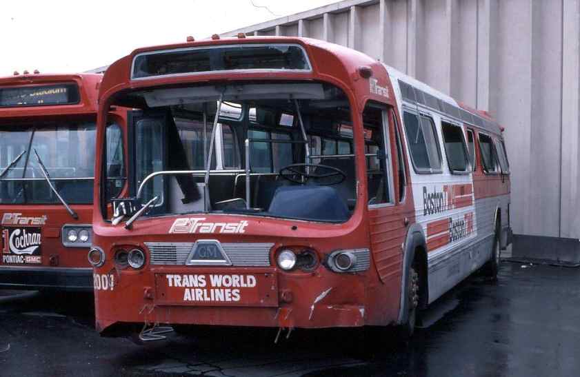 Flxible 2446 sits at Manchester after meeting the rear of a 18 wheeler. Now scrapped.