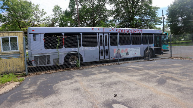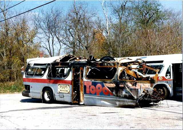 Orion 2067 sitting in scrapyard in Dravosburg, PA, Former West Mifflin Coach, Burned.