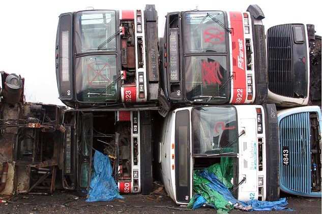 Former Ross buses 2455 and 2463 waiting the end. 2455 is better known for being the bus that my friends Kirk and Patty Driscoll were married in.
