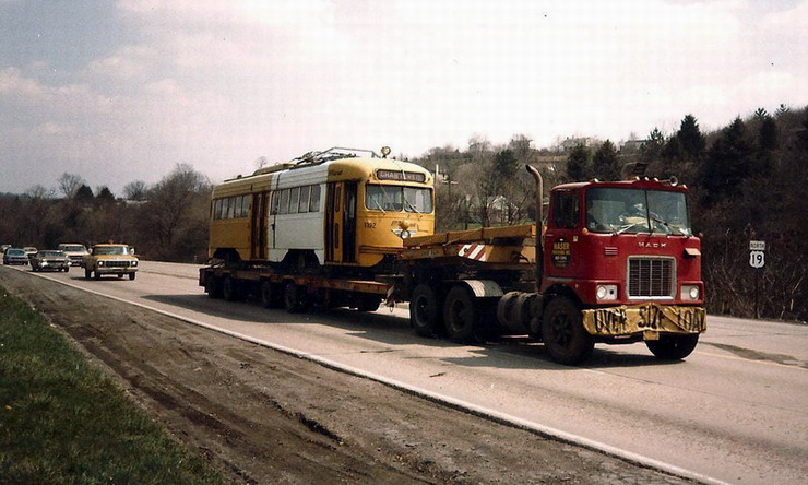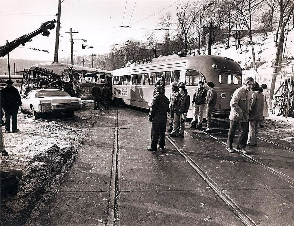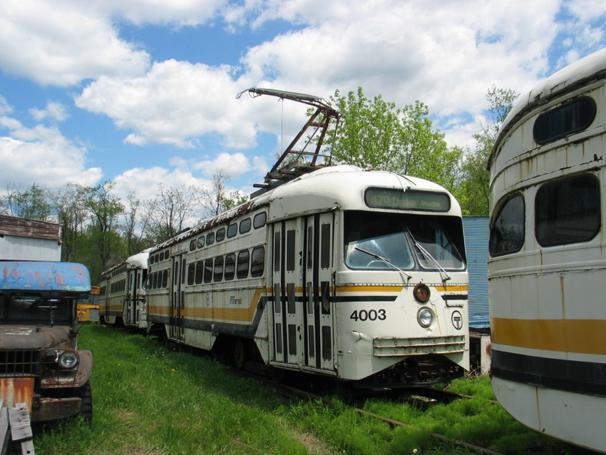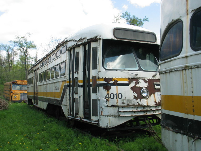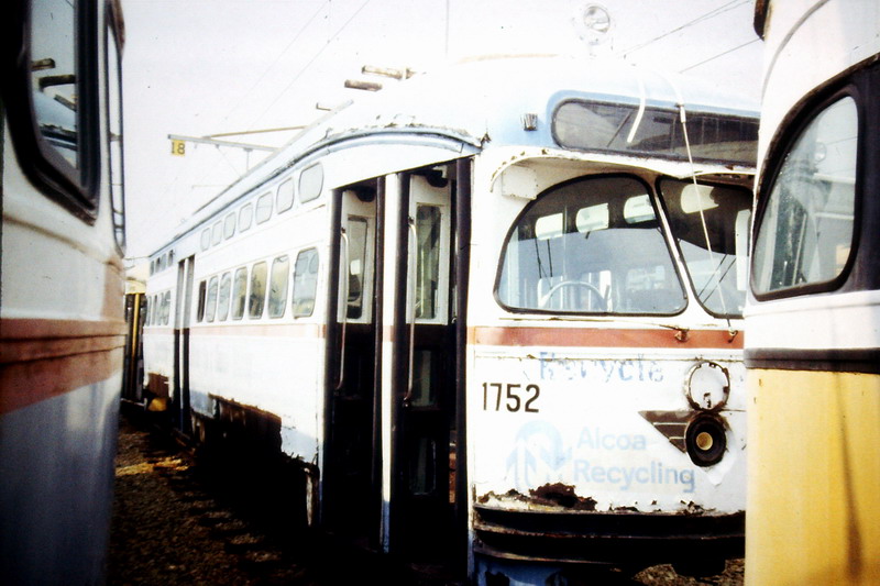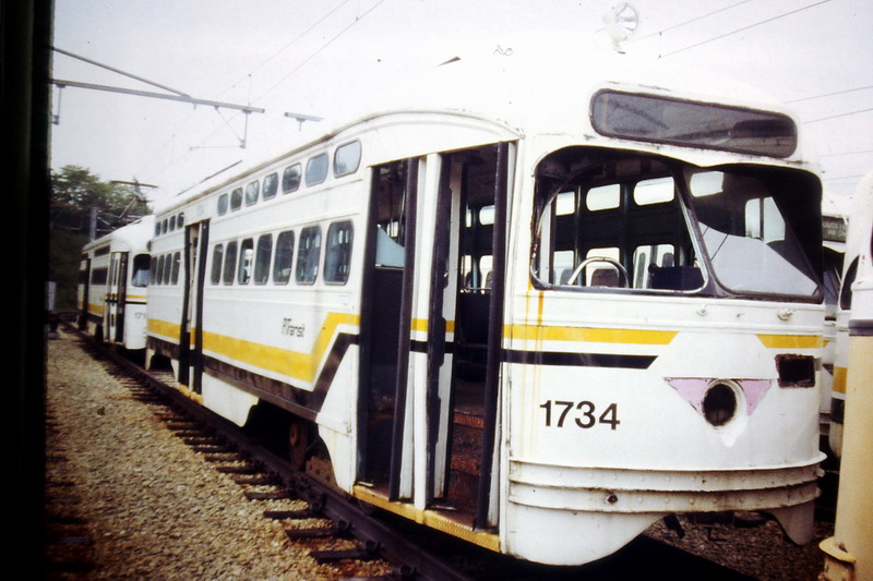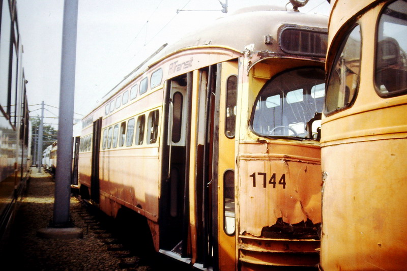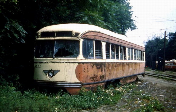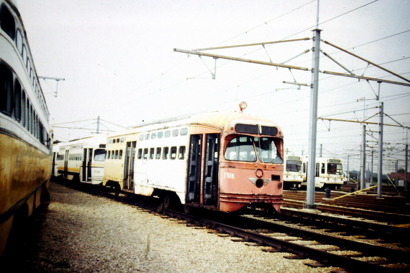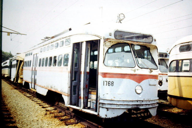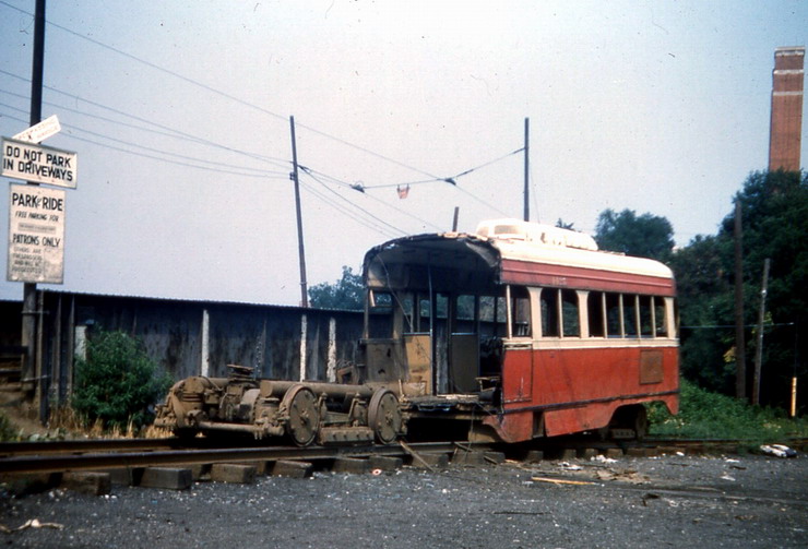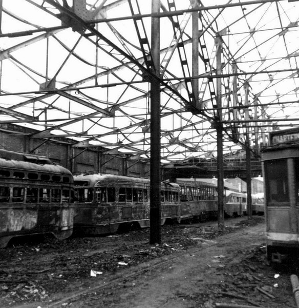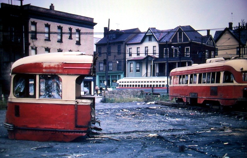 Off in the distance, a newly painted PCC is inbound just coming off of Haberman Ramp from the South Hills Junction to Warrington Avenue, as these other two PCC's are being cut up.