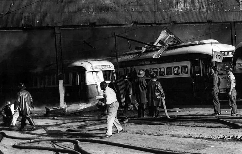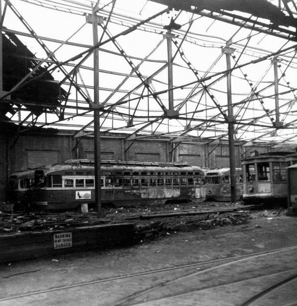 Homewood car barn was built in 1900 and grew to be one of the two largest installations of Pittsburgh Railways, with 110 cars housed there. Also the site of PRC's heavy repair shops. On May 18 1955, Barn No. 2 was destroyed by fire along with all of the equipment within it, which included PCC trolleys 1026, 1051, 1155, 1220, 1281, 1294, 1600, 1648, 1682, 1701, 1725.