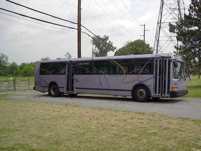 2300 in new paint laying over on the busway.