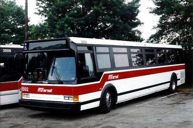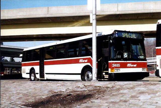 The Port Authority had a whole slew of the model commonly known as the "Metro" Some people believe that ours are 870s, but that is not the case. In fact, our Metros were said to be the last ones built by Flxible before it's demise in 95. All of ours are 93-95 models. More details on the fleet numbers are on the ROSTER page.