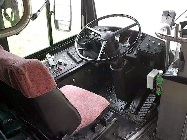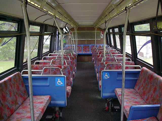 This is a picture of the passenger area of a Flxible Metro. The seats in this bus have been re-covered in the same fabric of the 5XXX series bus.