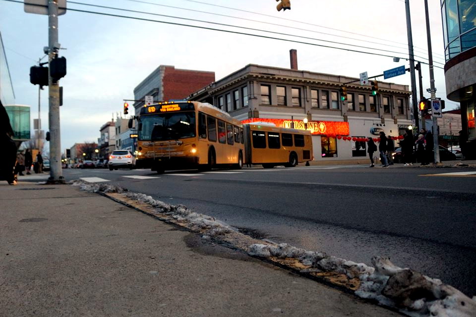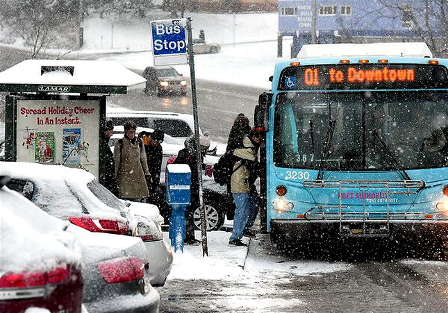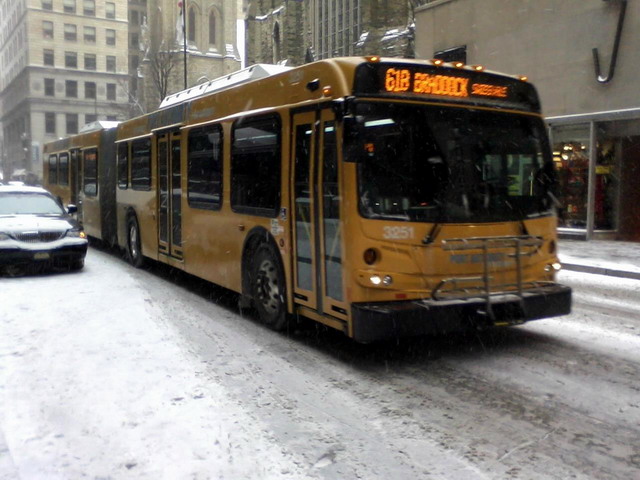 3215 in the snow in the buslane on 5th Ave in Oakland.