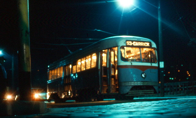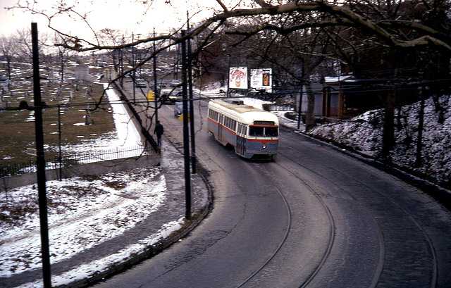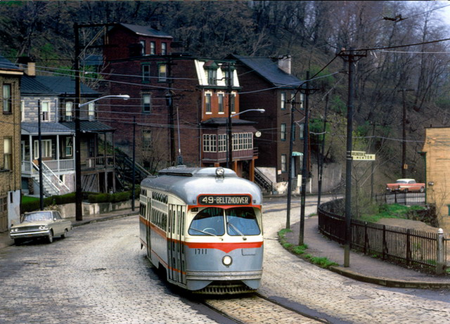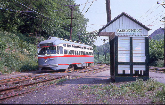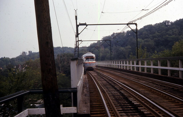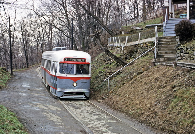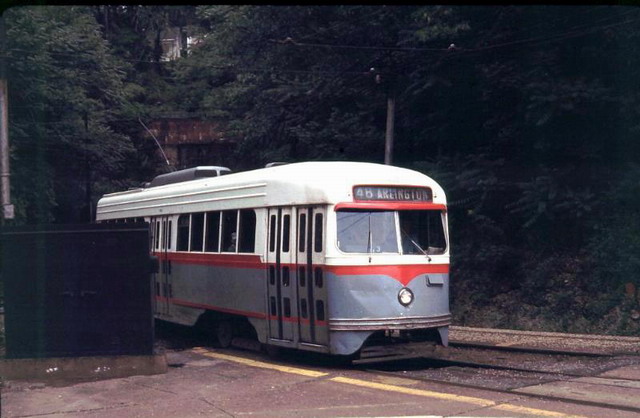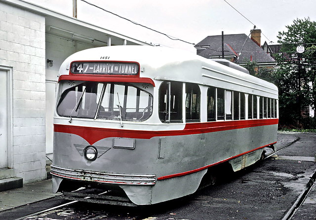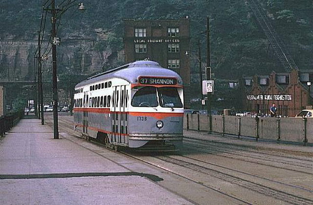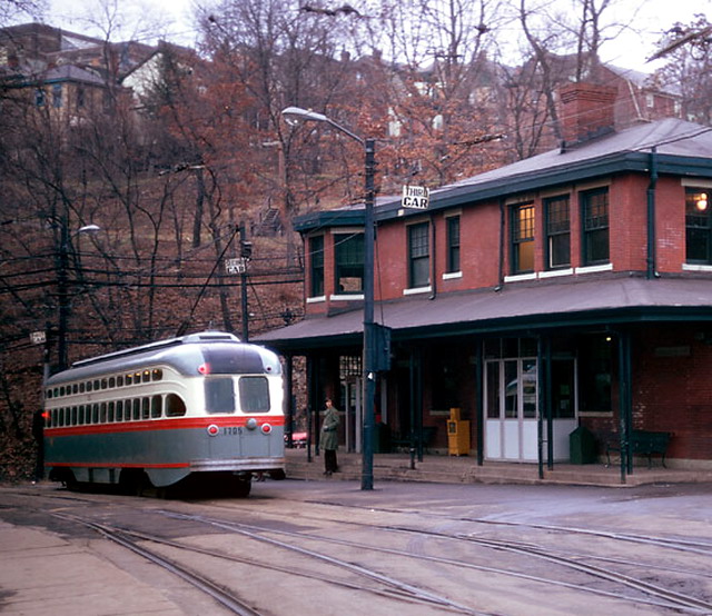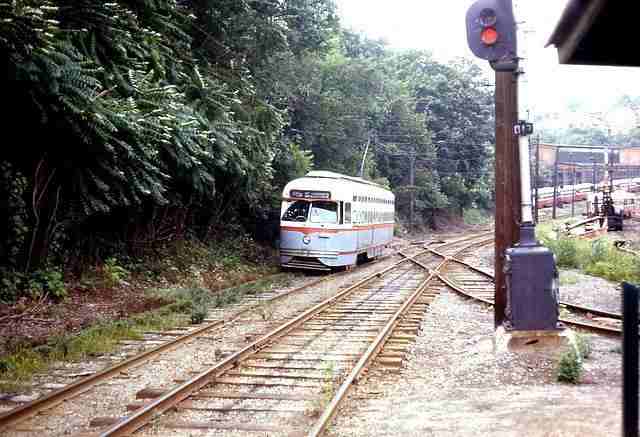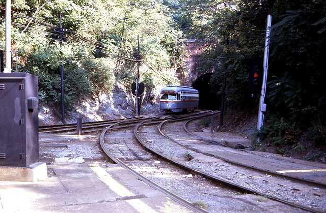 16XX series PCC emerging from the South Hills Transit tunnel at South Hills Junction.
