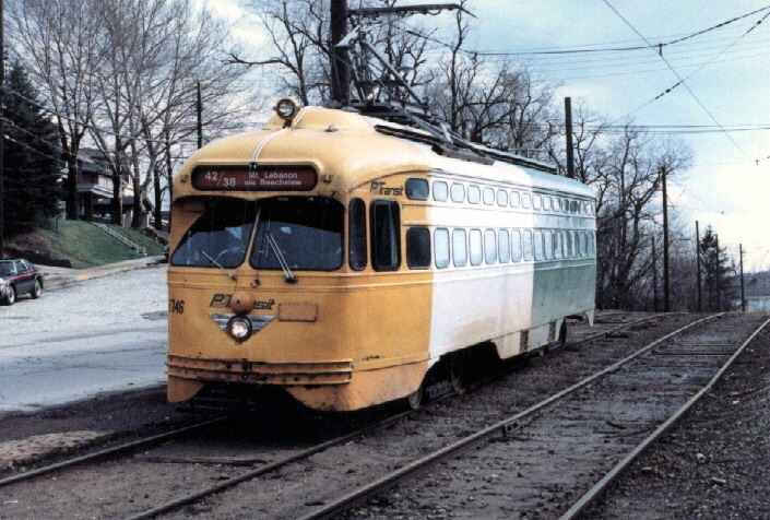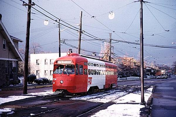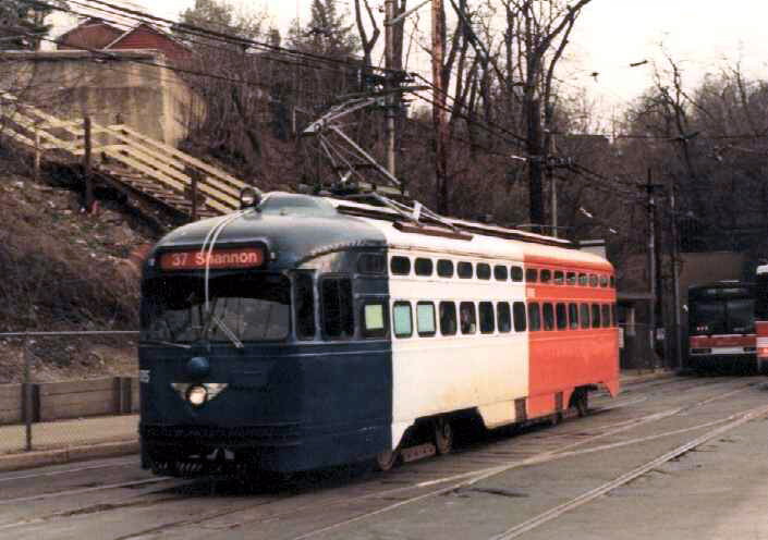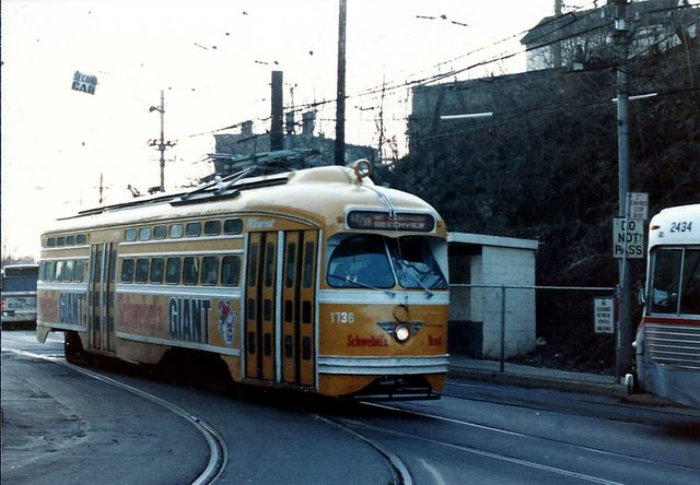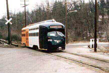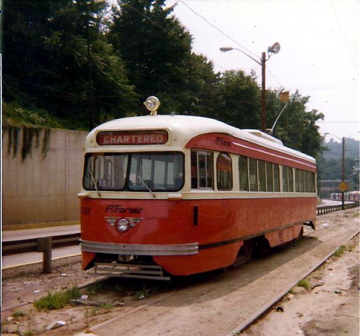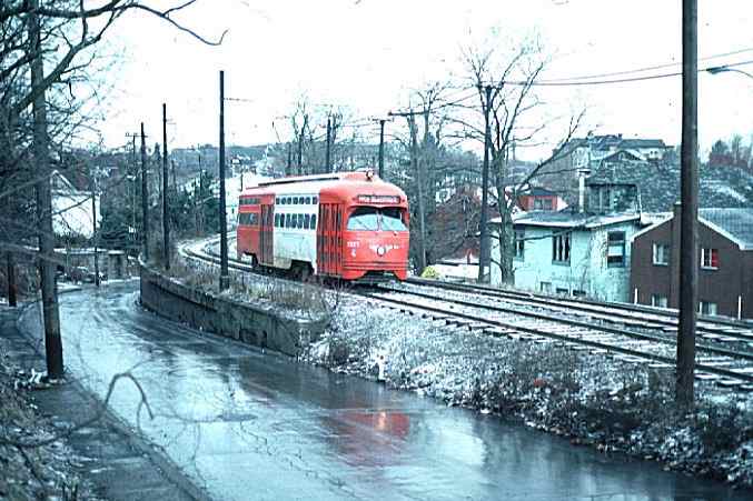PCC 1716 heading up the old Overbrook line, as seen from South Hills Junction.