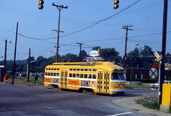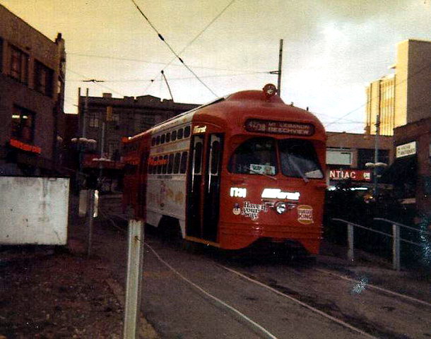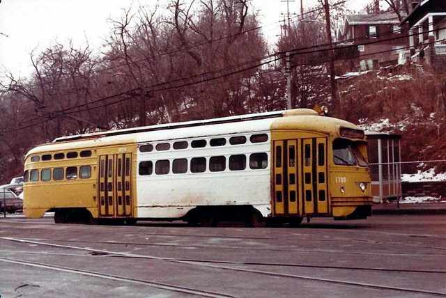 The rear of the "Terrible Trolley" at South Hills Jct. PCC 1713.