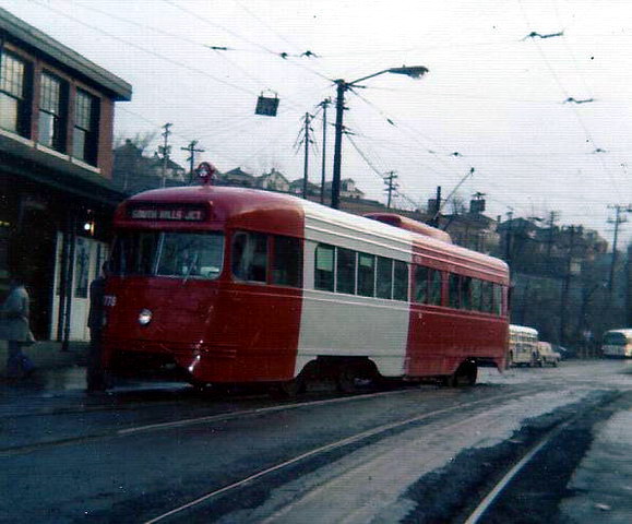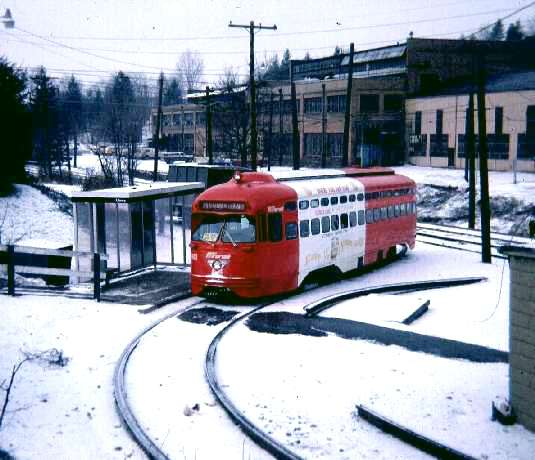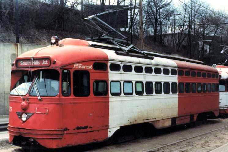PCC 1723 in red and white, awaits its next operator at South Hills Junction.