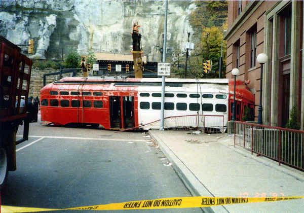 of the car. This car awaits its turn on the Smithfield Street Bridge.