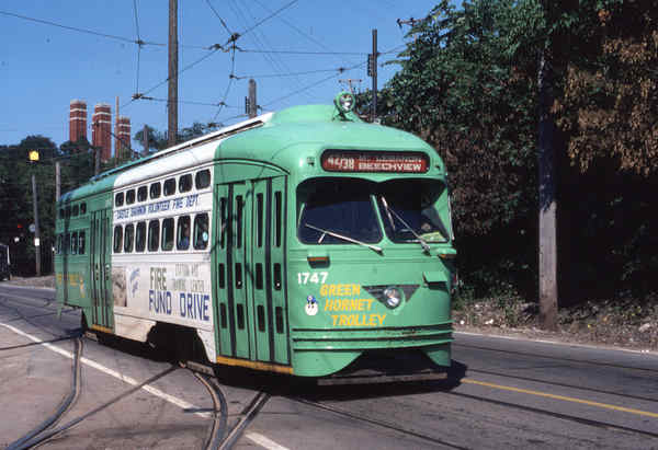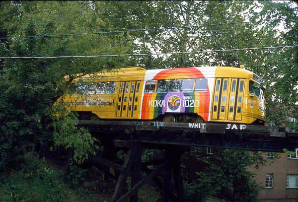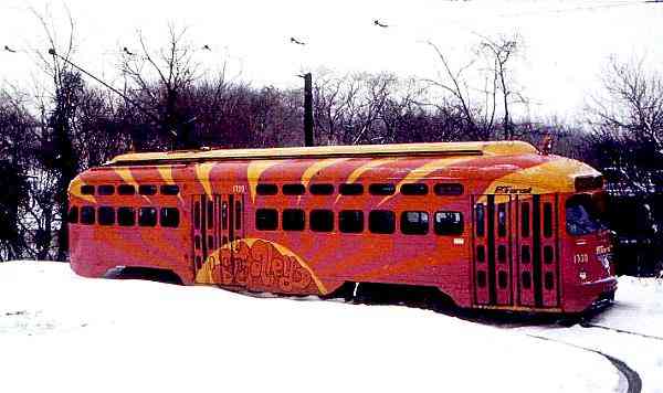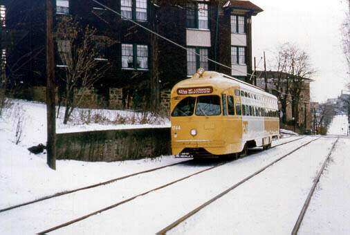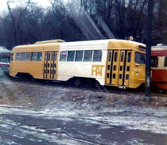 PCC 1744 in it's first paint job in the colorful era...Yellow and white.