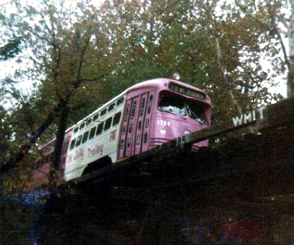 Ed's car, 1734 on the single track trestle between castle Shannon and Mt Lebanon. (38 Line)