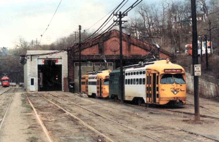 1746 and mystery cars sitting at South Hills Junction carhouse, shortly before it was torn down.