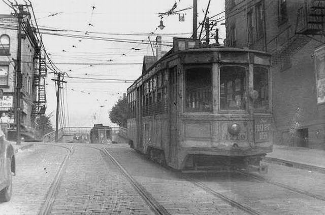 Pittsburgh's trolley system was big and P.N. Jones, head of Pittsburgh Railways, headed the effort to produce a standard car. Pittsburgh Railways decides that this new, low-floor trolley with its sloping floor is going to be its standard car. The company builds 1000 of them in McKees Rocks between 1915 and 1927. The steel cars ran on 600 volts of direct current and feature rattan seats, beautiful woodwork, windows that open and shaded light bulbs.