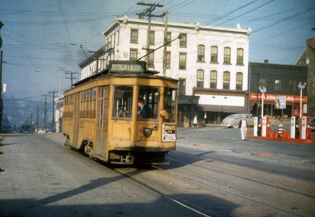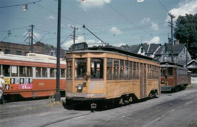 The trolleys are painted orange but their color fades to yellow, prompting most people to call them yellow trolleys. They were used in Pittsburgh until the mid-1950s,