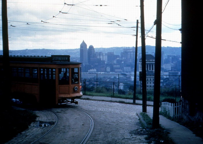 Duquesne Incline and Point Bridge. Car appears to be 5204.