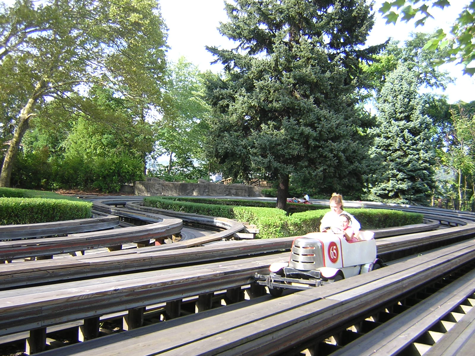 Also known by several veterans as the Auto Ride, this ride is the last of its kind and was designed by Harry Traver of the Traver Engineering Company. Electric cars run through a trough-like wooden track that twists and turns. When the ride opened in 1930, it had several small hills placed in the track, but these were soon removed to avoid rear-end collisions that were caused when cars could not get up and over them on rainy days. Again to avoid rear-end collisions, the ride was fully computer automated and the cars slowed down for the 2014 season.