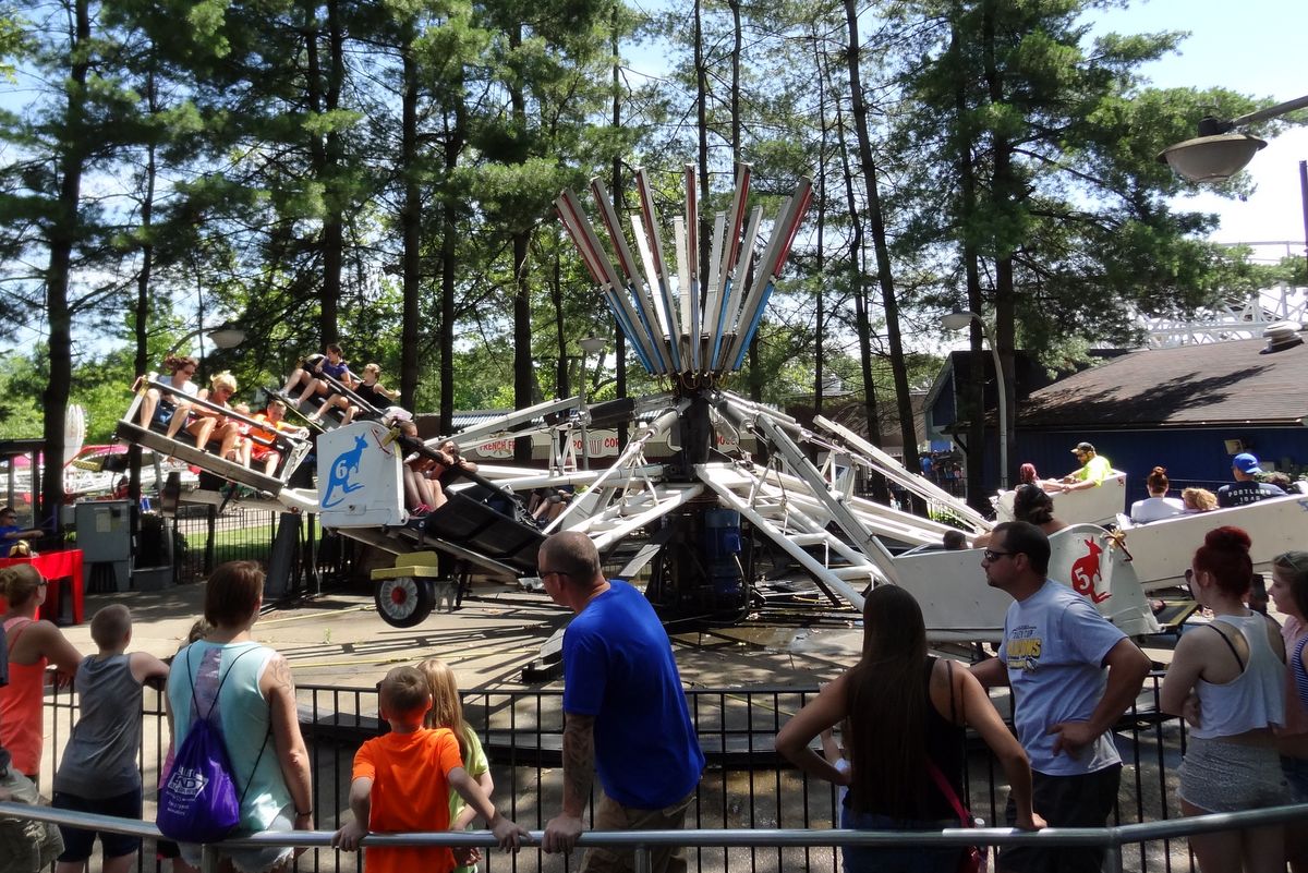 This ride is a modern, open-air version of the park's old Ranger ride and features the Kennywood arrows on the rotating arms. Seated on inverted seats with legs freely dangling, riders swing back and forth – higher and higher with each pendulum motion. As momentum builds, the ride culminates by spinning riders the full 360 degrees.