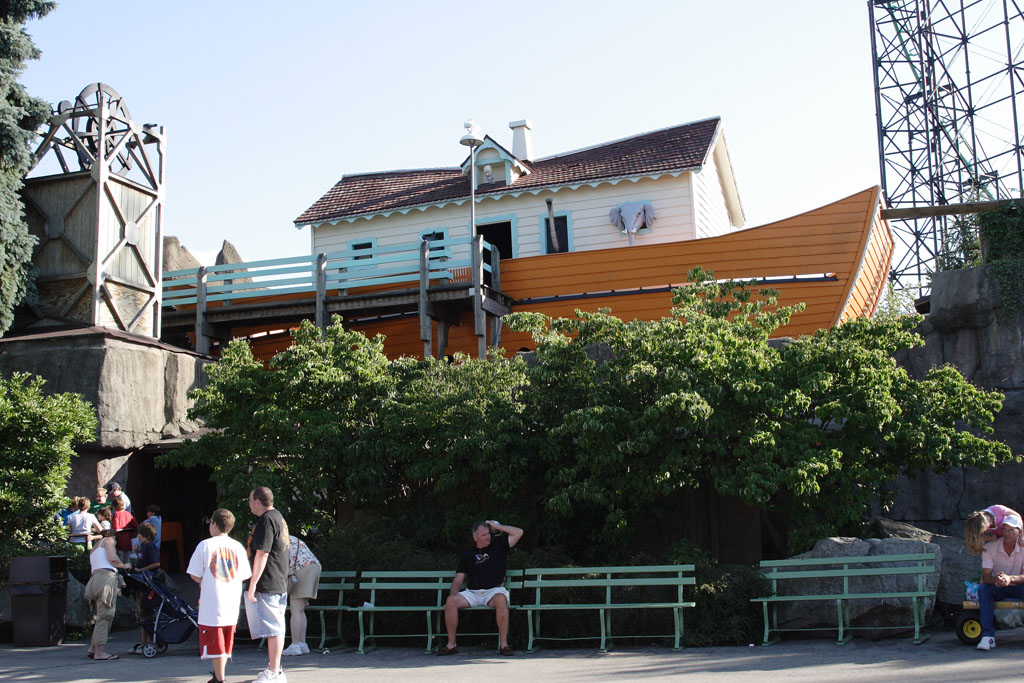 A walk-through "dark" attraction. Patrons walk through an ark recreating Noah's attempt at bringing animals aboard. This ride, the last operating of its kind in the world, was remodeled in 1996. During the remodeling, the Ark was entirely rebuilt due to structural problems with the original "boat." Instead of entering through a whale's mouth, patrons boarded an old industrial service elevator that provided the effect of rising, then crashing to the ground. Part of the re-theming of the ride included props meant to appear like ancient artifacts that were found below the Ark. One popular classic gag, the shaker boards, still remains. In the winter of 2015–16, the Ark was entirely remodeled to its pre-1996 state, including the famed whale's mouth entrance. Older gags that were removed in the 1996 renovation of the Ark that were re-added include air jets that were previously used to blow air up women's skirts, but now are simply used to catch guests off-guard.