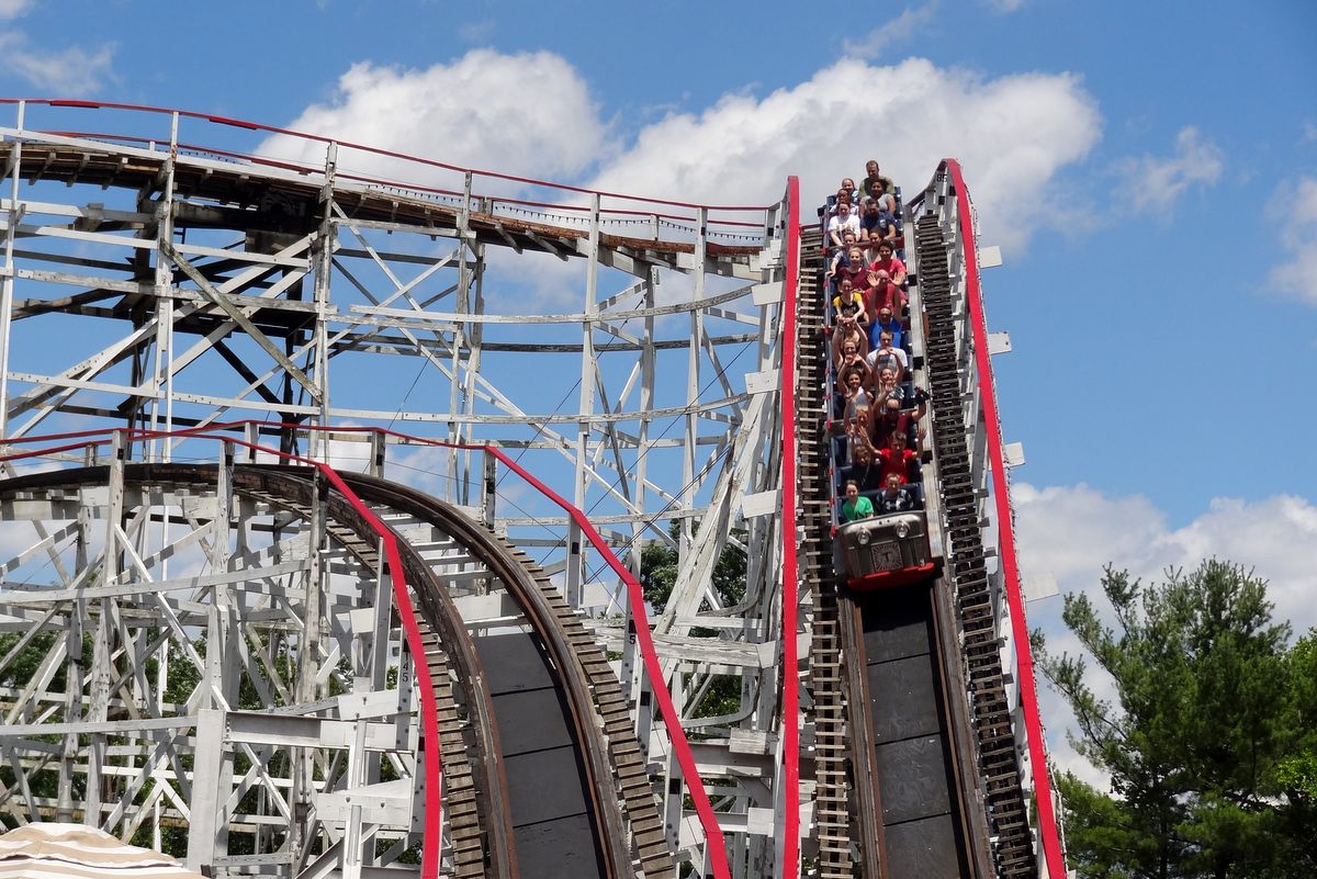 A wooden roller coaster that resulted from a renovation of the Pippin (1924–1967). It was ranked the Ultimate Roller Coaster and King of Coasters by the New York Times in 1974. The coaster is unusual in that the lift hill isn't immediately out of the station. Instead, the lift hill is in the middle of the ride.