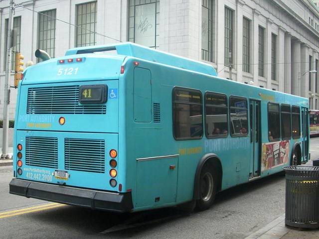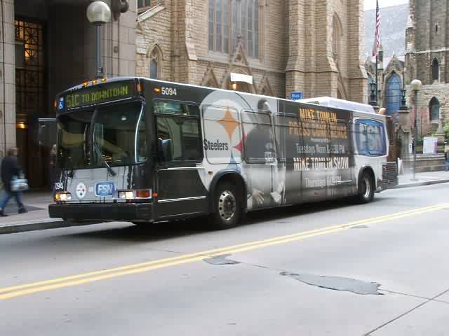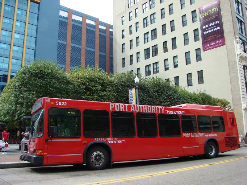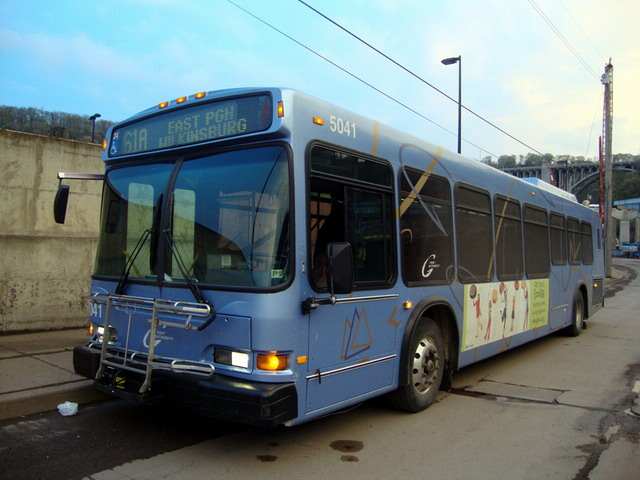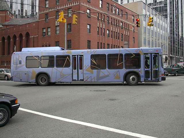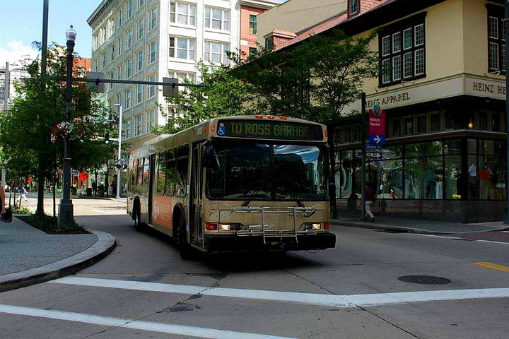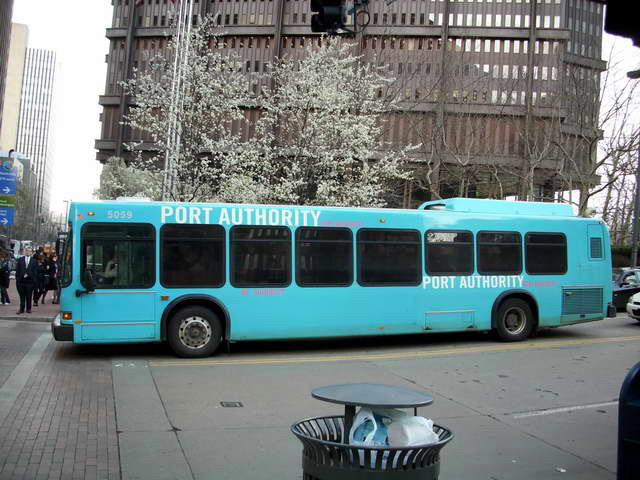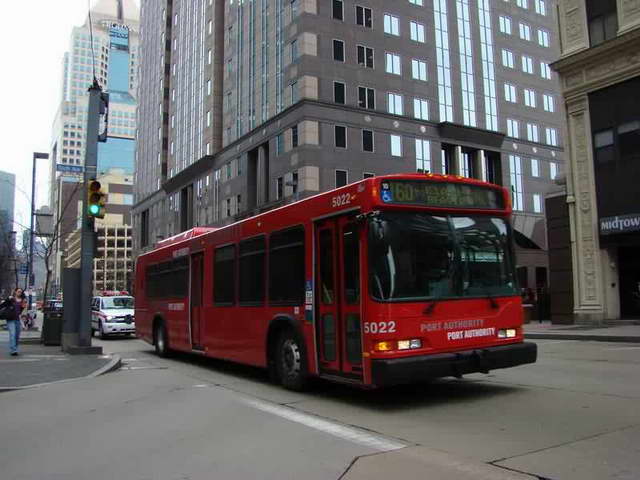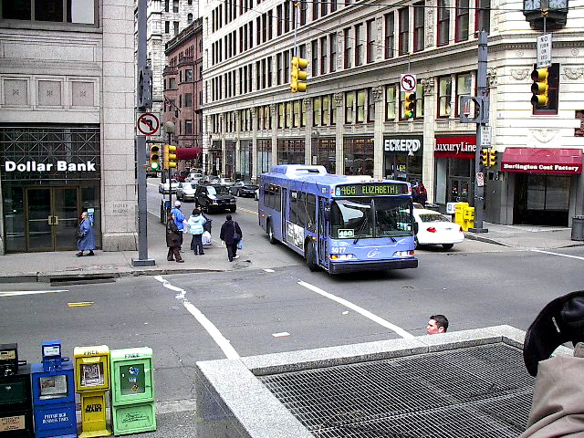 5047 heading back to West Mifflin garage, making the turn from Stanwix St onto Allies Blvd.