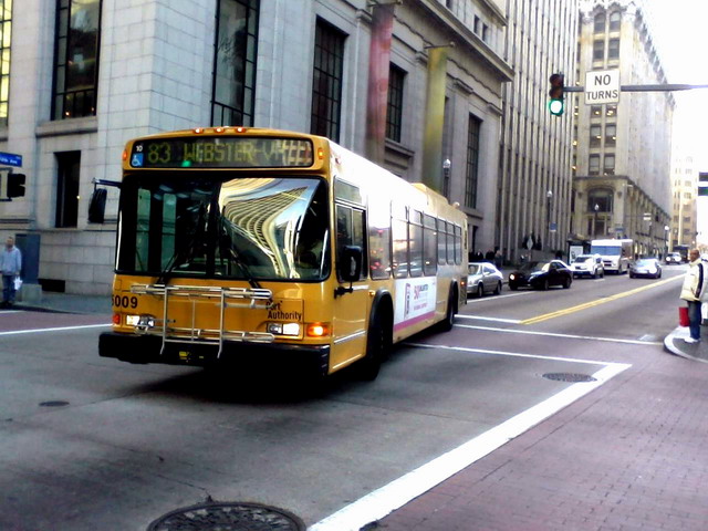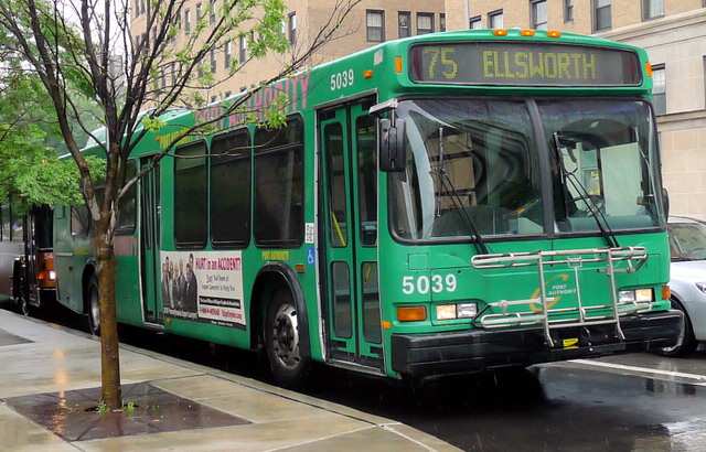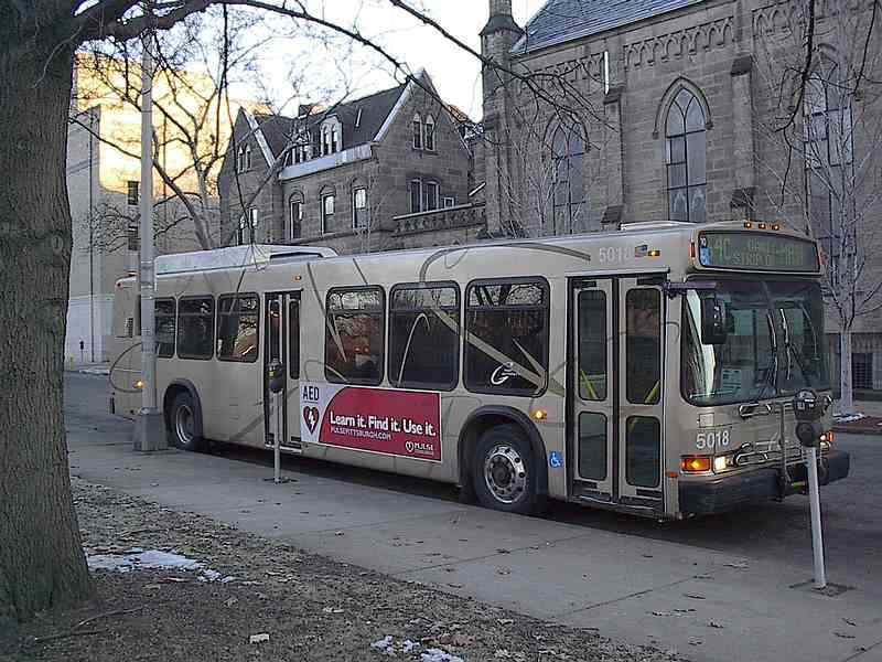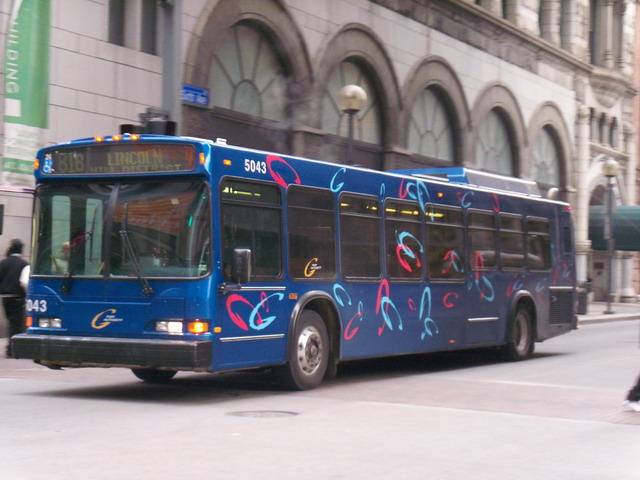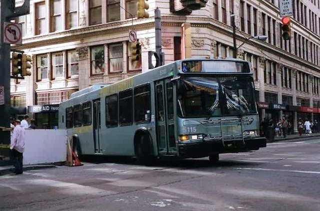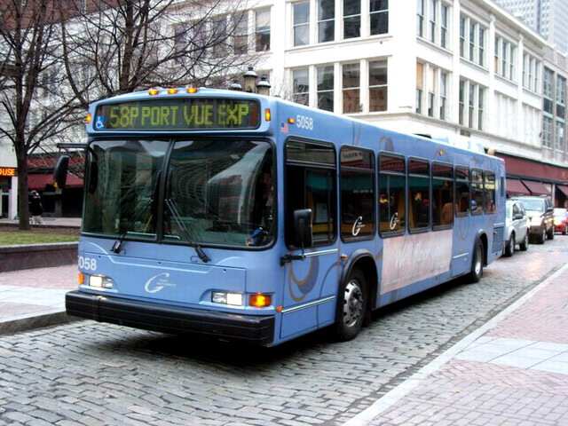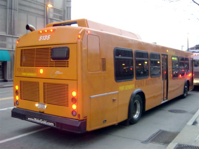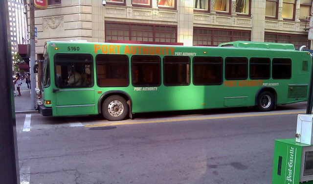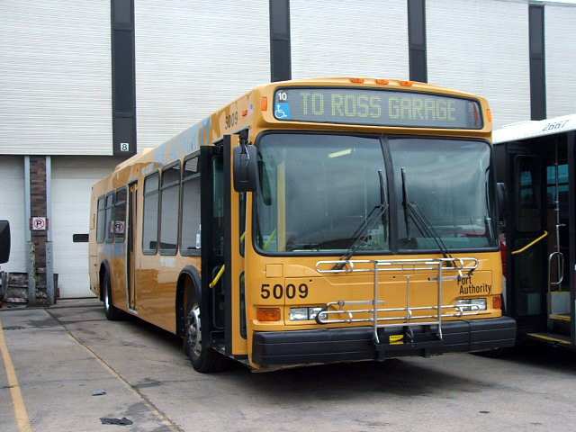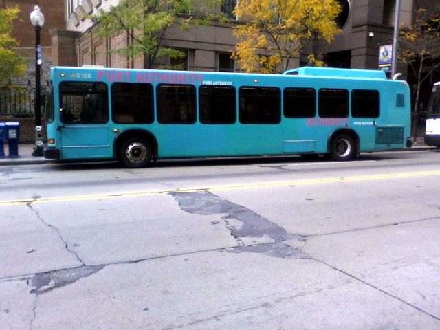 5047 heading back to West Mifflin garage, making the turn from Stanwix St onto Allies Blvd.