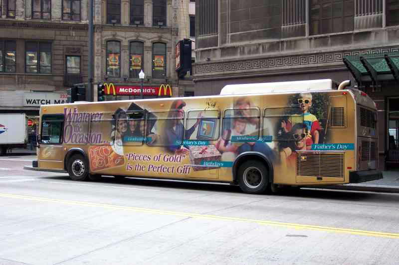 5010 in the "Pieces of Gold" wrap, loading on Liberty Ave.