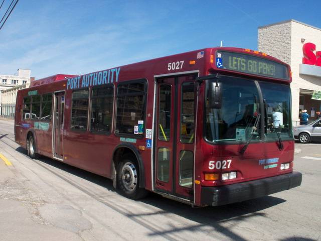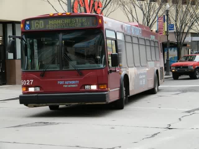 5027, on the 16D, in Cherry red. Bus is at 6th and Liberty in Pittsburgh.