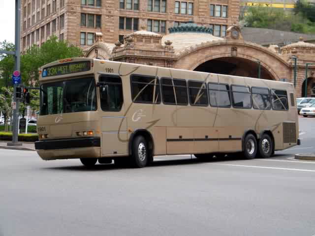 Here's 1901 Turning off the East Busway. The Amtrak station is in the background.