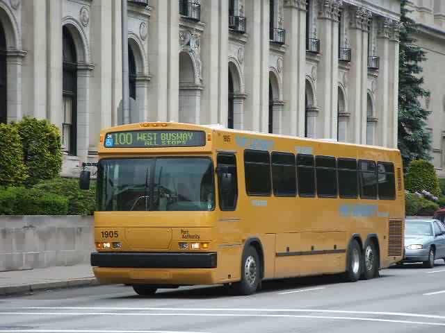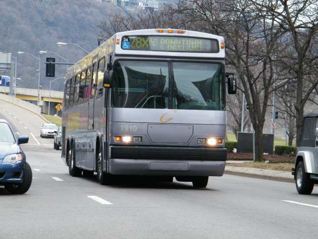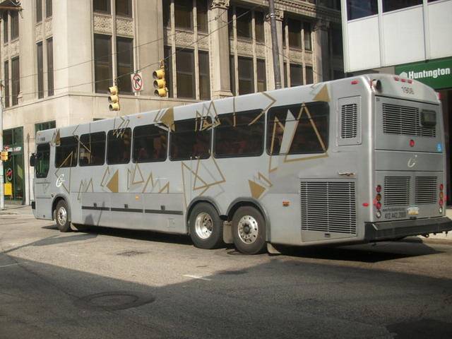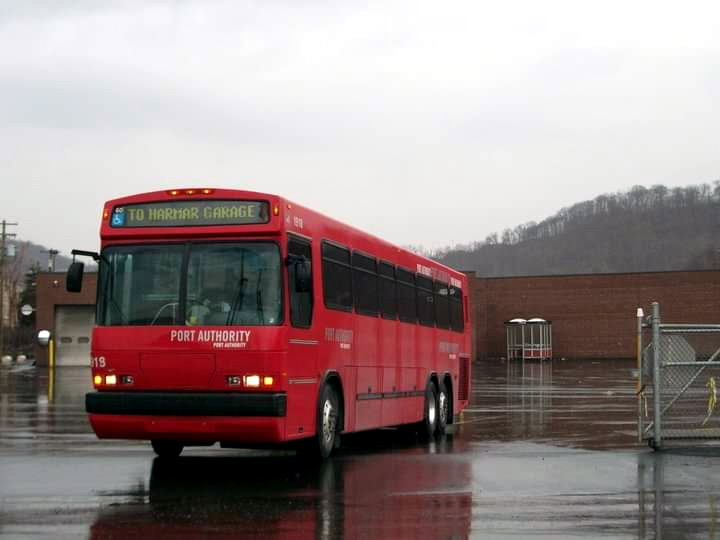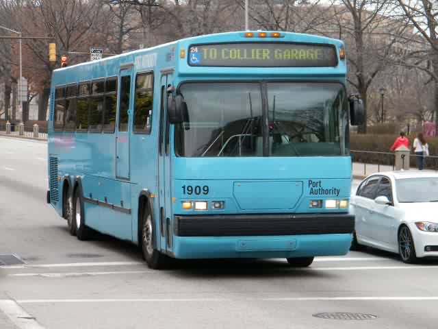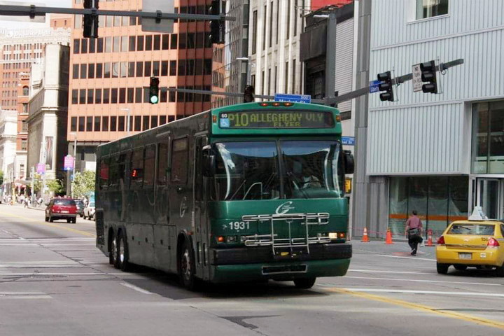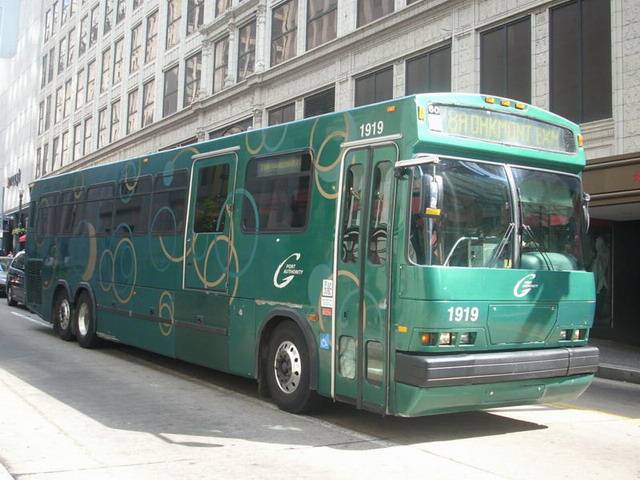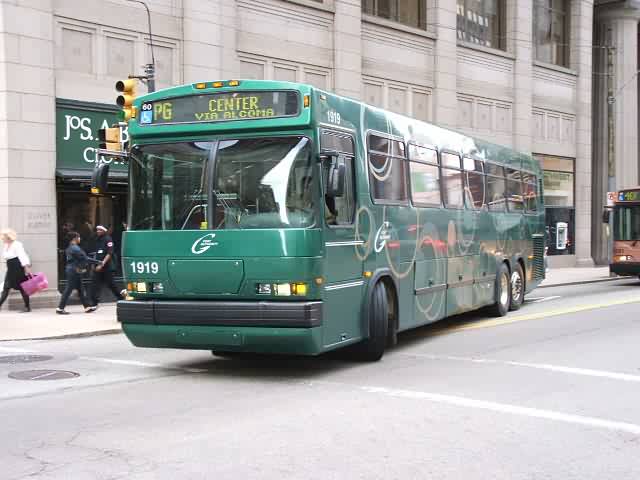 1919 making a turn Downtown. This bus is based out of harmar garage.