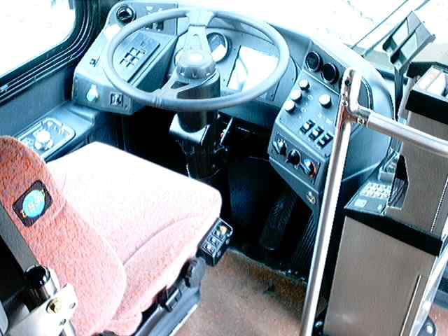 Driver comfort all the way, with that USSC seat, and the positioning of the controls. The green button on the left of the dash is to open the door.
