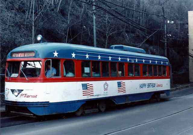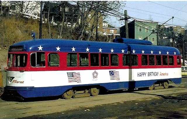1791 outbound at South Hills Junction, wearing its Bicentennial theme.