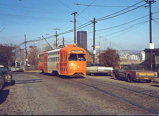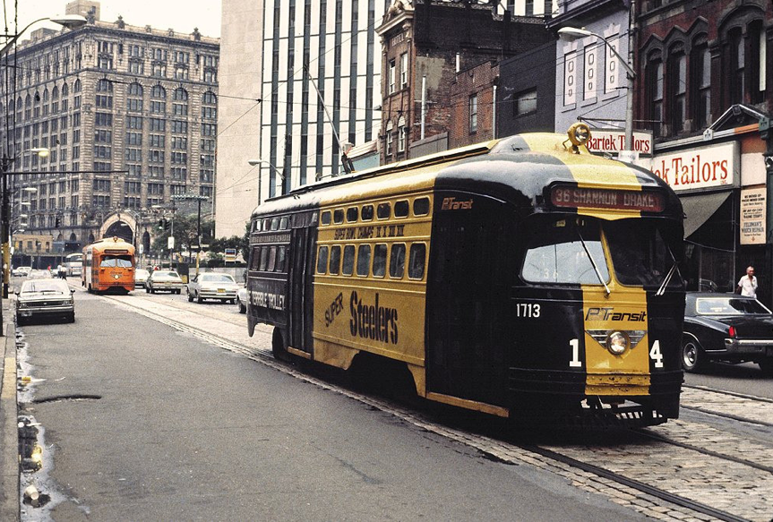 Cruising down Liberty Ave. is 1713, the "Terrible Trolley".