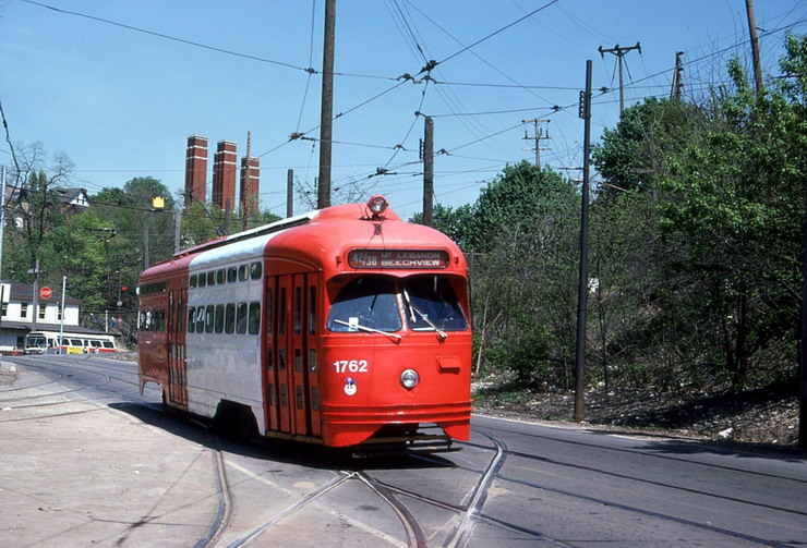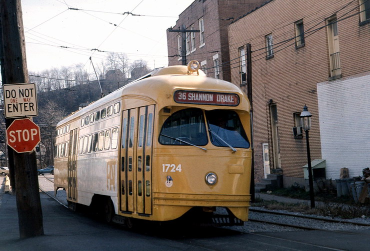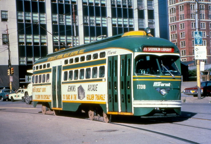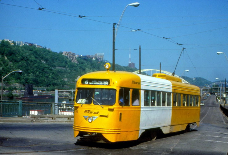 1734 (without the "Jolly Trolley") coming off the Smithfield St Bridge.