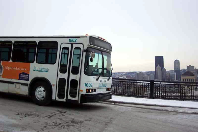 Then onto the 11E Fineview run, which has some of the worst hills and turns anywhere on a route. Pittsburgh sits in the background. Notice the 21 Fineview card in the window, brings back memories of the old 21 trolley!