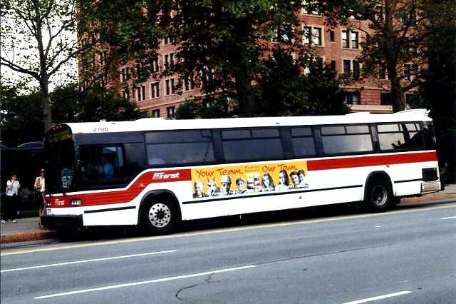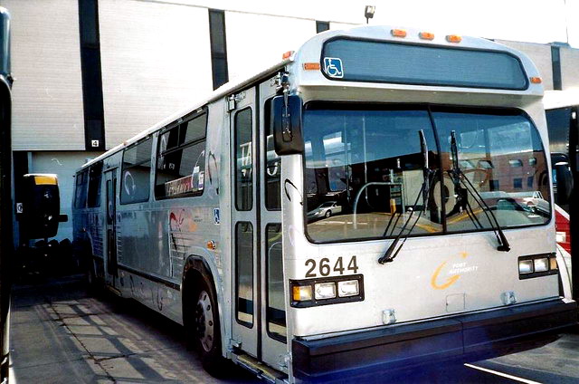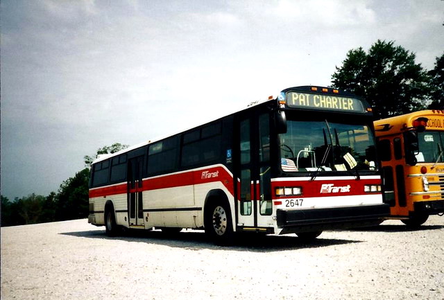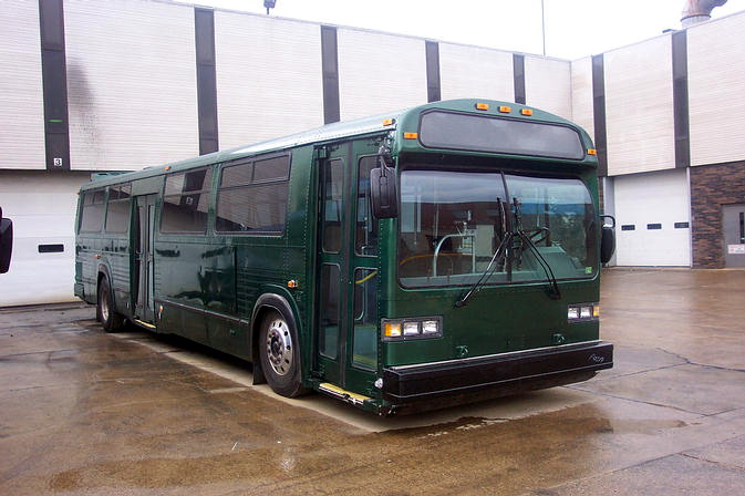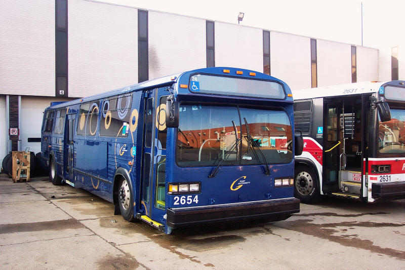 2654, freshly rebuilt and painted. This bus was in a accident and our body shop at Manchester re-built it. Great Job! See the End of Line page for the before shot.