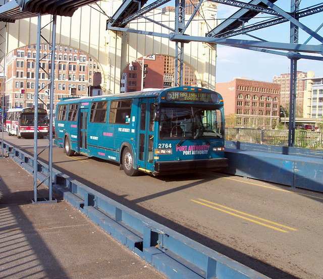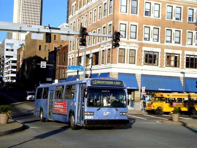 2661 leaving Pittsburgh via the Smithfield St Bridge.