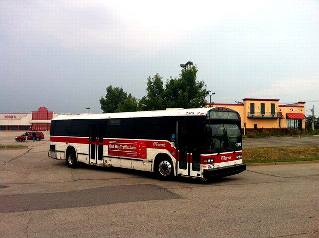 2611 bus parked in the middle of Rt 19 while the unknown driver grabs a bite at McDonalds.