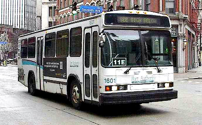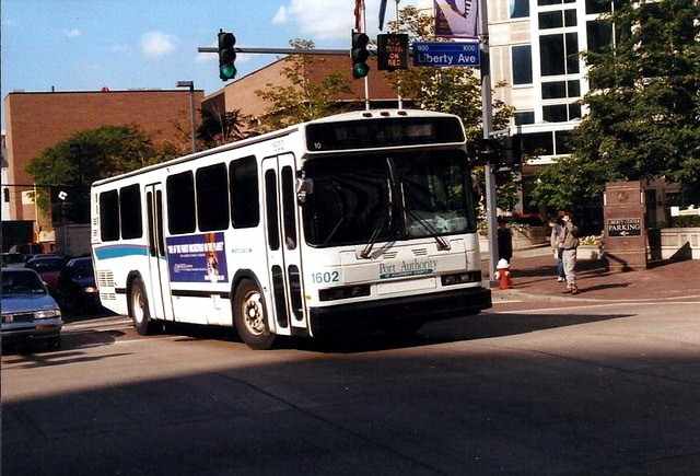 1601 coming down Liberty Ave on the 11E Fineview Rt. These 16XX series buses could always be found on this route. A 40 ft bus will not fit on some of the turns on this route.