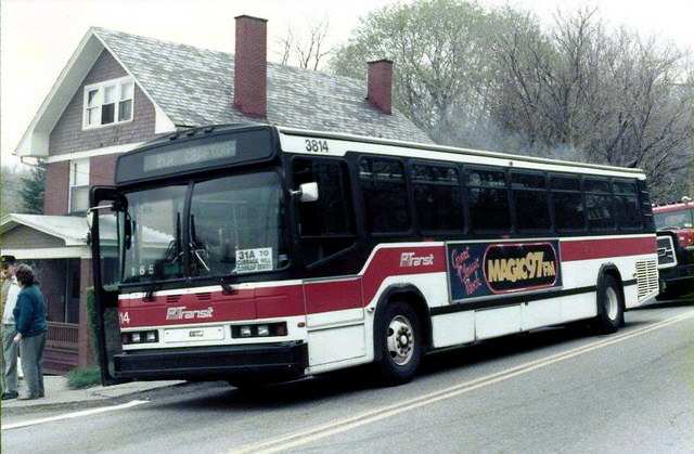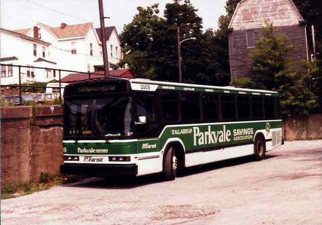 Port Authority painted 3901 in this neat looking scheme. Bus is sitting at Castle Shannon on 46S. Neither the route or the bus exist today. This was a Ross Division bus lent to West Mifflin Division.