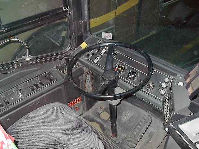 This is the drivers area of a 3900 series bus. The radio is mounted to the bottom bracket of the transfer cutter. Basic bus at best, as compared to out new Gilligs, but functional and got the job done.